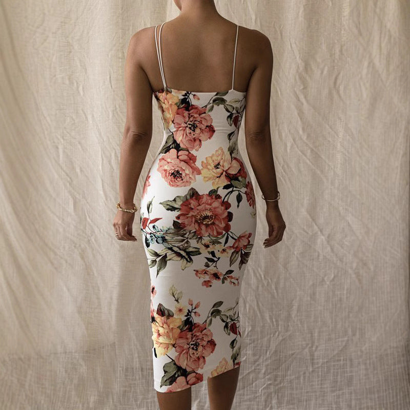 Ladies Elegant Floral Pattern Evening Dress with Sophisticated Ruffle Details