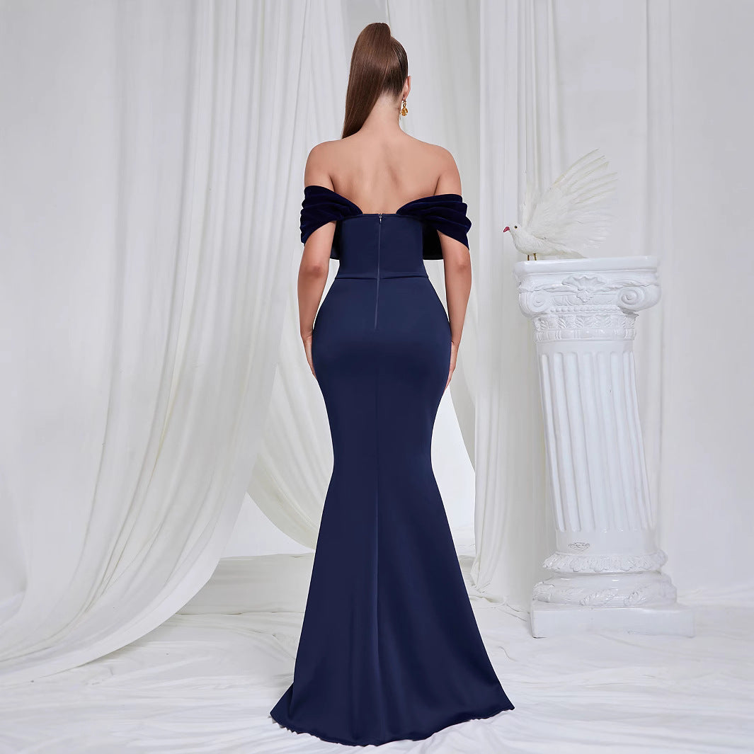 Ladies Elegant Mermaid Evening Dress with Off-Shoulder Design and Voluminous Puff Sleeves